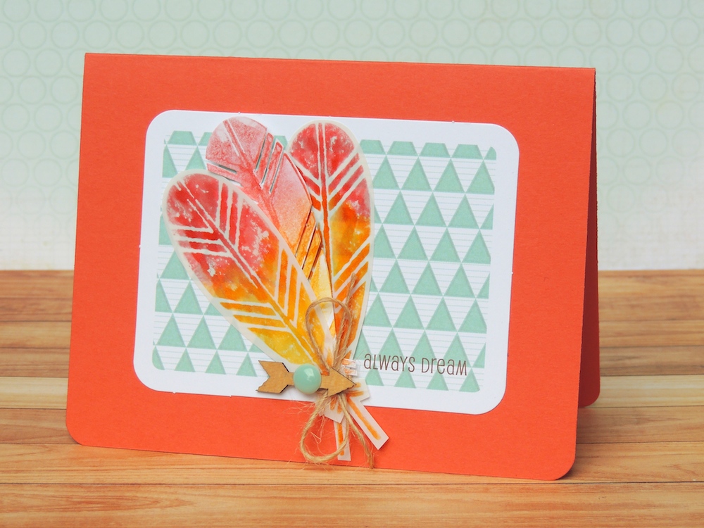 I used some fabulous new feather stamps, and a pocket scrapbooking card from Close To My Heart. CTMH has a new pocket scrapbooking line called, Picture My Life. They have quite a few collections to choose from. This card is from the Surf's Up collection. The stamp is from the new stamp set, Feathers. To create these feathers, I used Gelatos and a spritz of water, and stamped the feathers on vellum. I love the way the Gelatos blend together and still create such vibrant colors! Lots of fun, and just the right amount of messy!